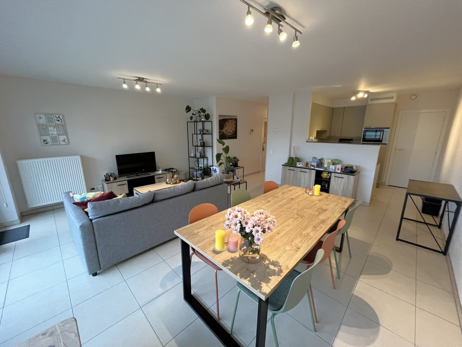Het appartement omvat een inkomhal met ingemaakte kast, een ruime en lichtrijke living met aansluitend het terras met zicht op de binnentuin, een volledig ingerichte keuken met alle toestellen en een praktische berging/wasplaats. De centrale gang geeft toegang tot de badkamer met douche, het apart toilet en 3 slaapkamers (waarvan één met ingemaakte kasten en een elektrische zonnewering).